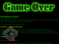 GameOver has been broken down into two sections. Section 1 consists of special web applications that are designed especially to teach the basics of Web Security. This seciton will cover: