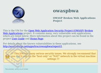 The Broken Web Applications (BWA) Project produces a Virtual Machine running a variety of applications with known vulnerabilities for those interested in: