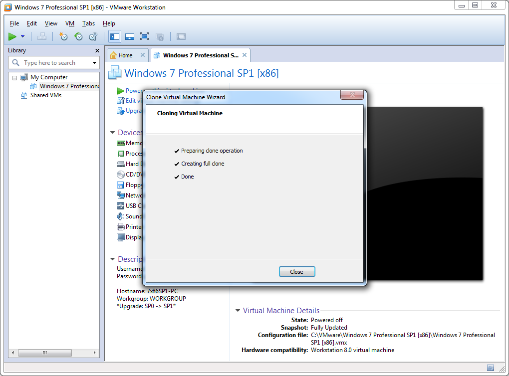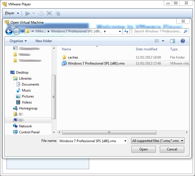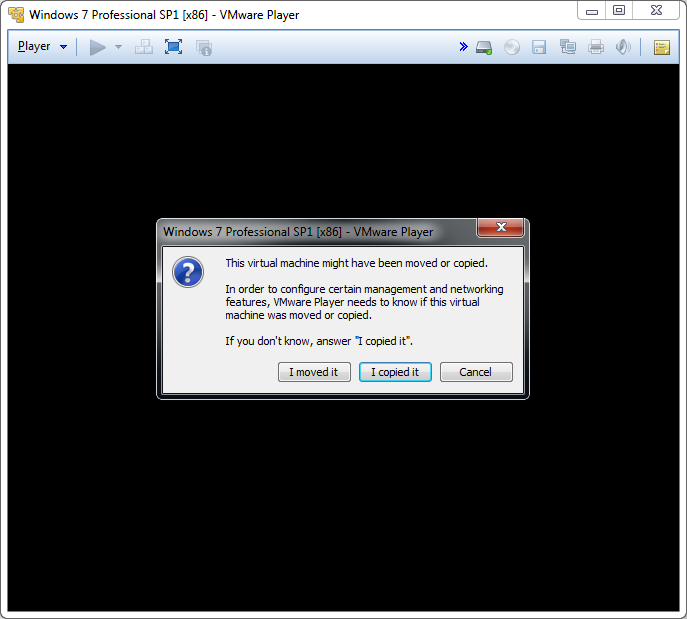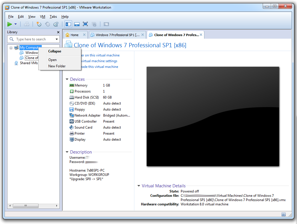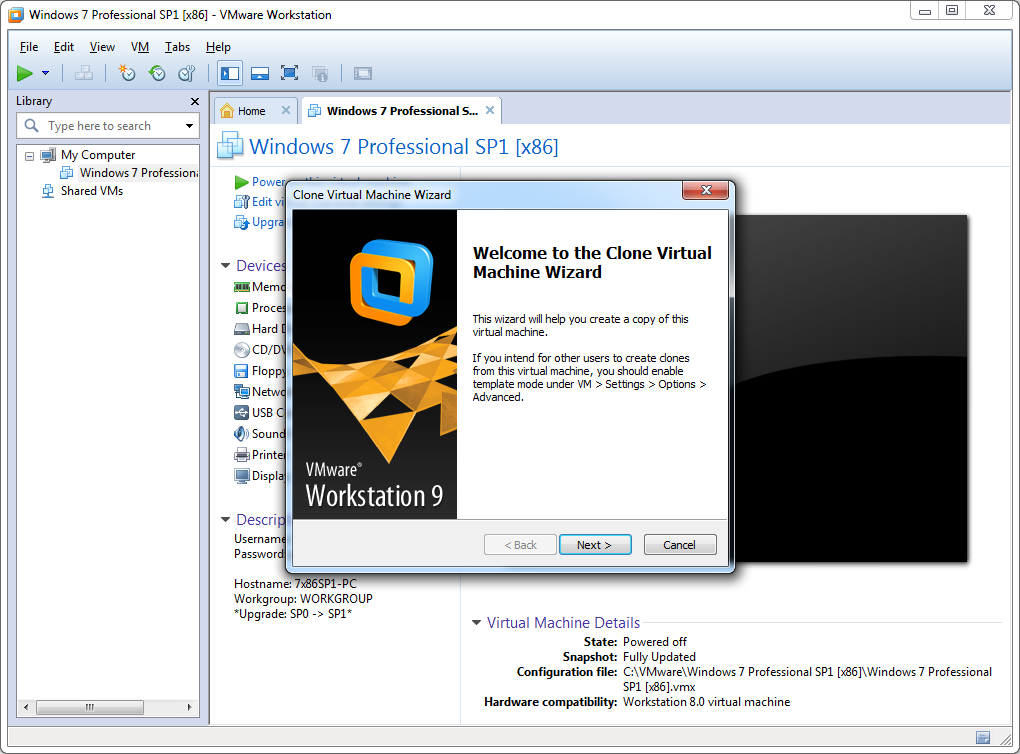 8. VMware Player --> Open a Virtual Machine --> <Clone folder> --> <Machine name>
