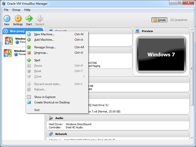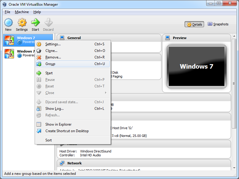 1. <Machine name> --> Right click: Group
