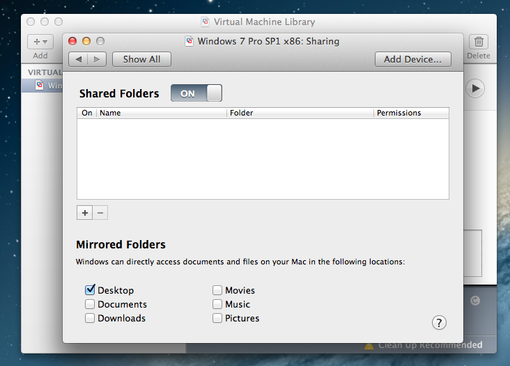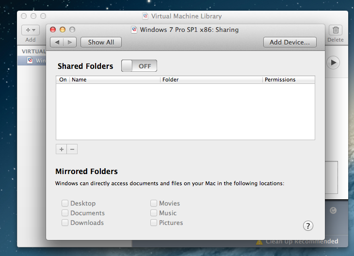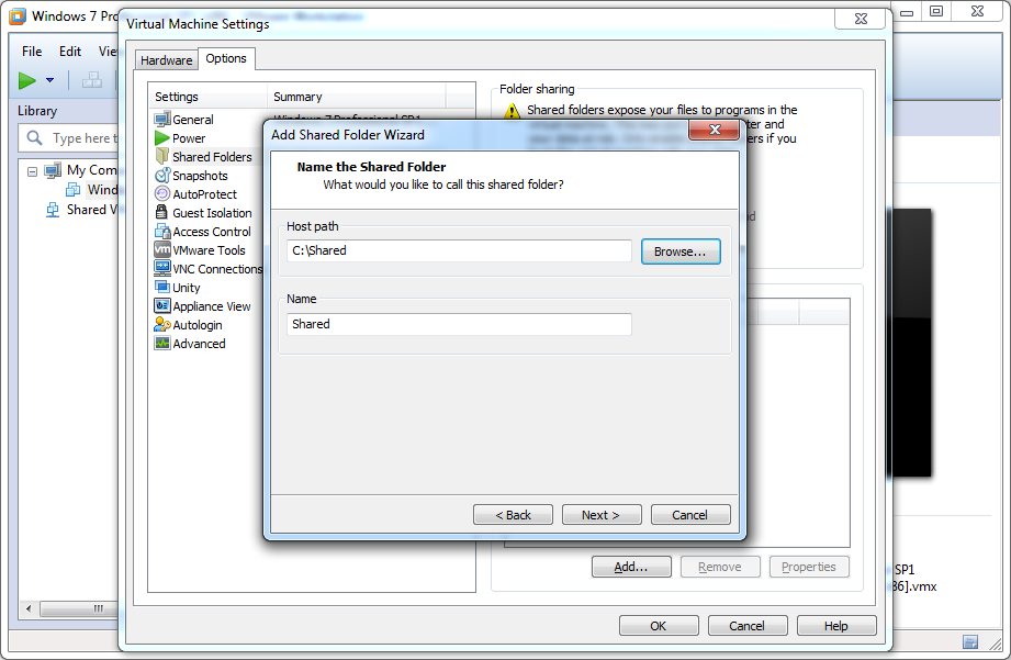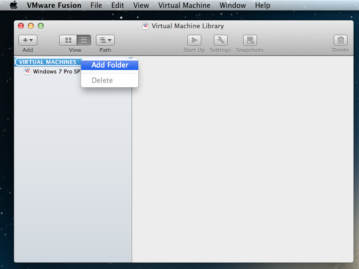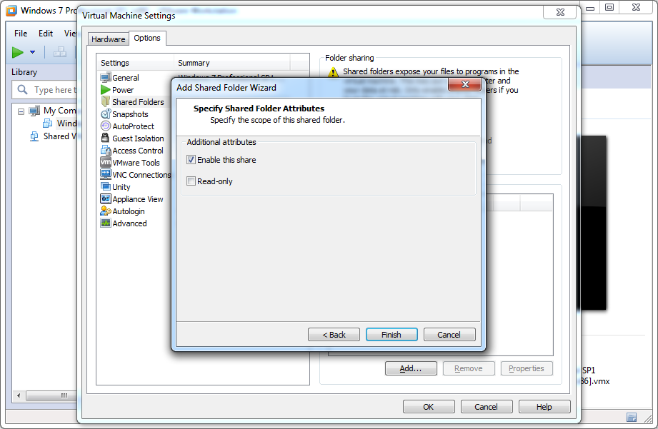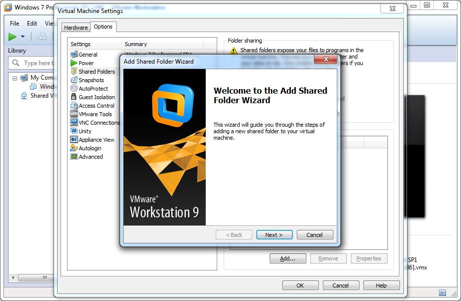 1. <Virtual Machine> --> Right click: Add Folder