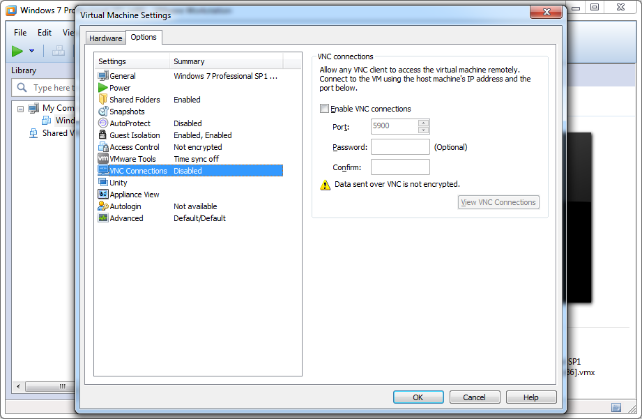 2. Display --> Remote Display --> Enable: 'Enable Server' --> Ok