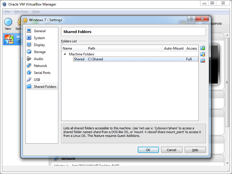 2. Sharing --> 'Shared Folders: On' --> 'Plus'