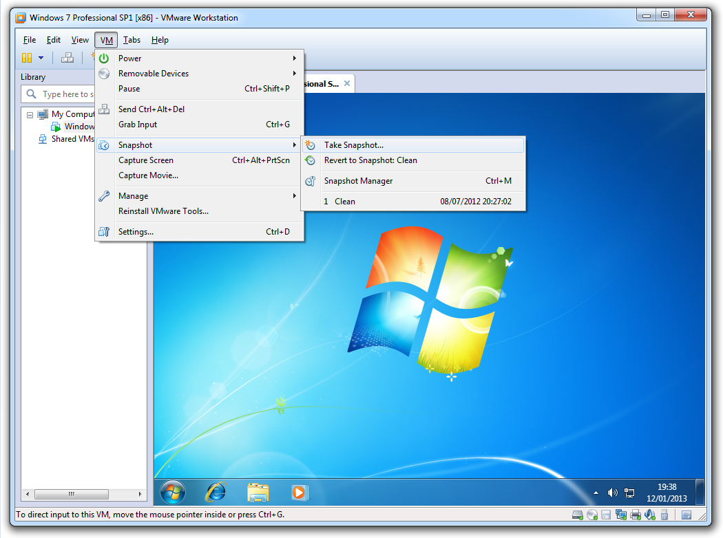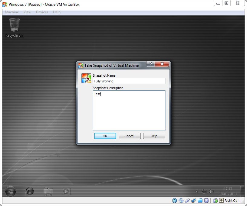 1. Machine --> Take Snapshot...