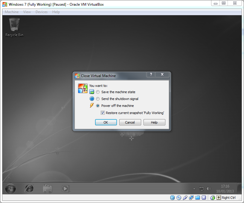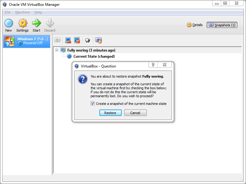 4. When powering down the machine, you have the option to restore to last snapshot ...or