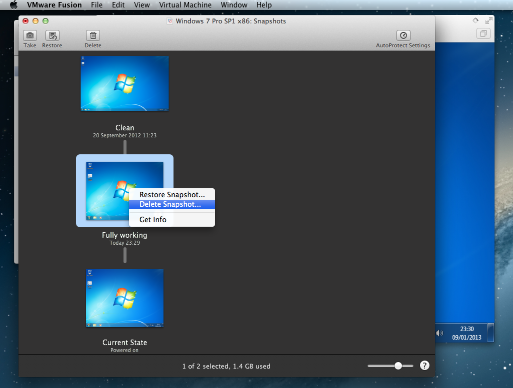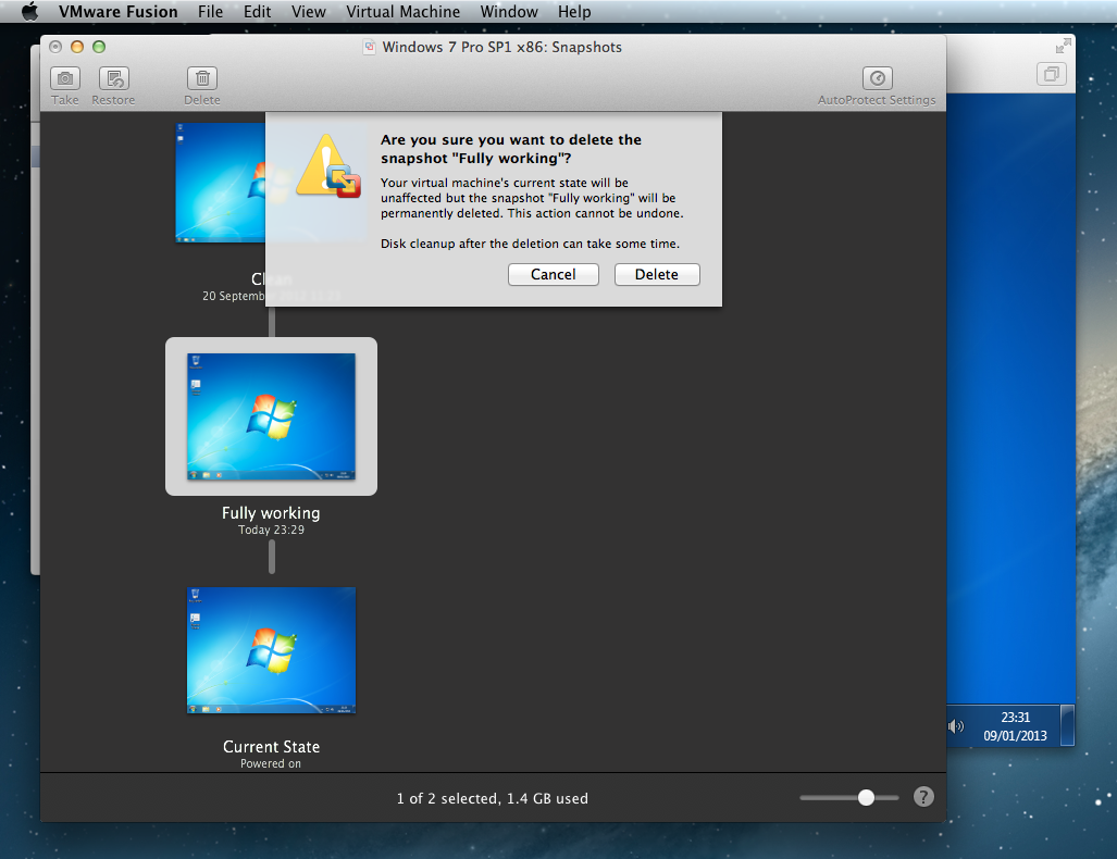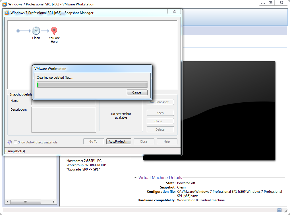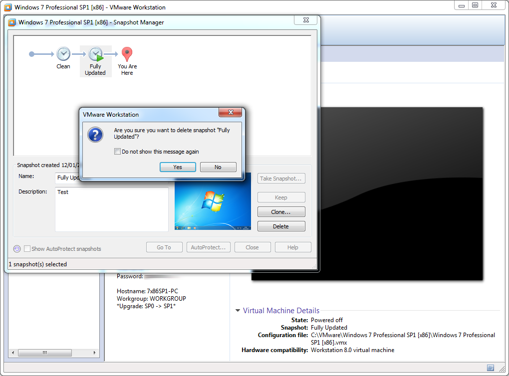 6. Snapshot --> Right click: 'Delete Snapshot' --> Delete