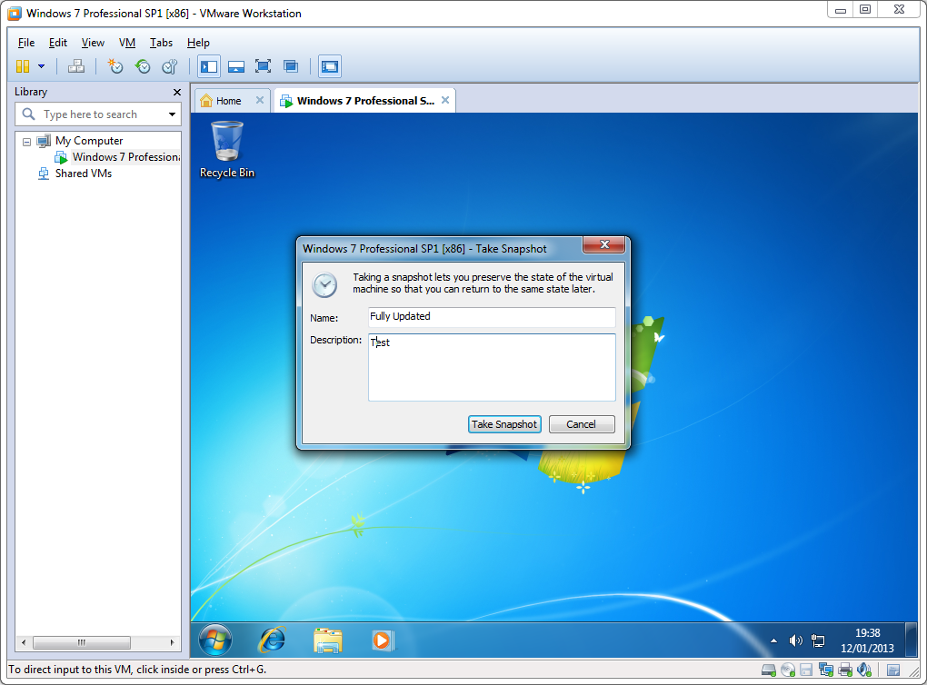 1. VM --> Snapshots --> Take Snapshot...