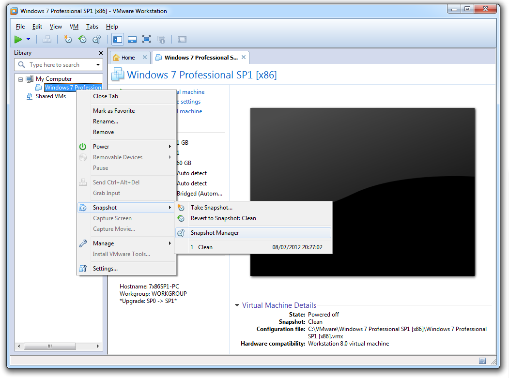 4. <machine> --> Snapshot --> Snapshot Manager