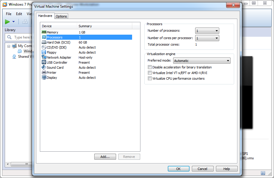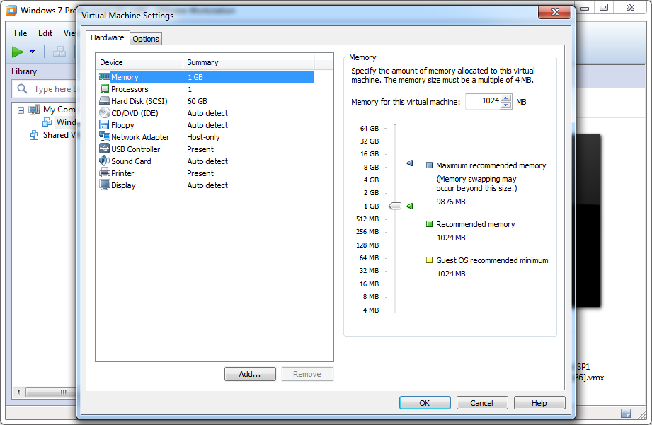 1. <Machine> --> Edit virtual machine settings