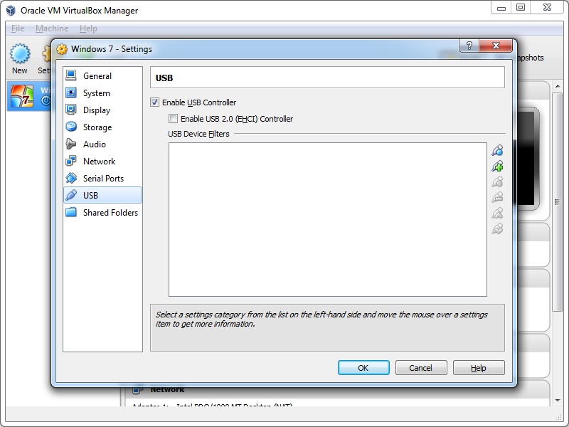 You can gain more control by going to: <Machine> --> Settings --> USB