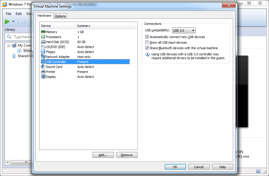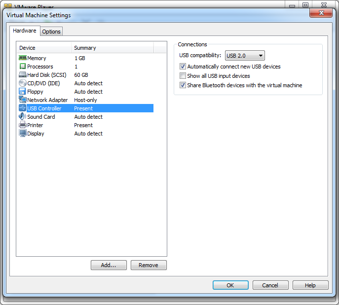 You can gain more control by going to: <Machine> --> Edit virtual machine settings --> USB Controller