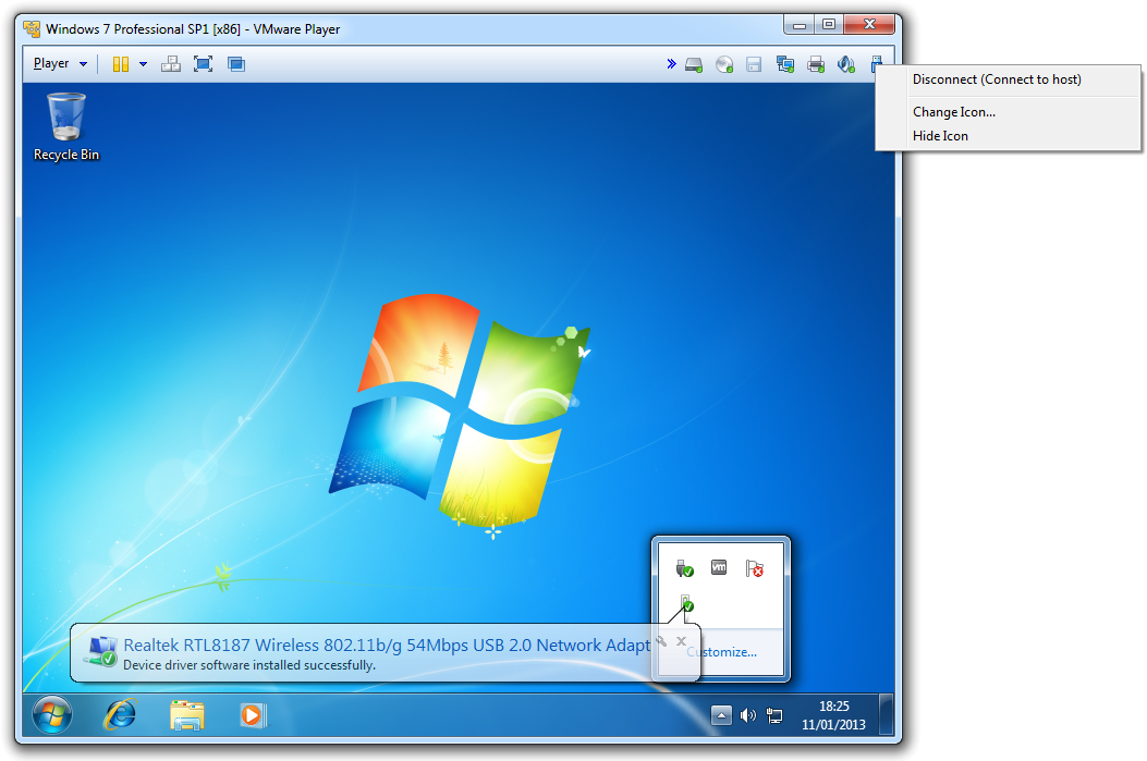 2. Right click: USB icon --> Connect (Disconnect from host)