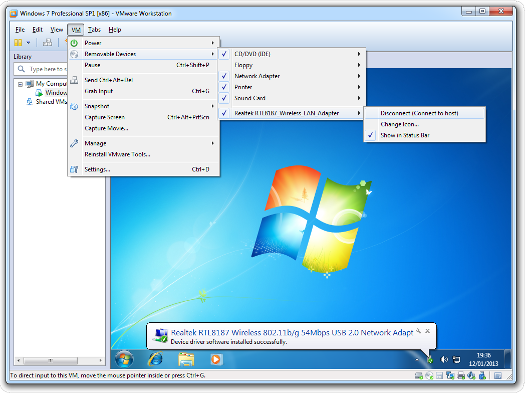 3. Right click: USB icon --> Connect (Disconnect from host)